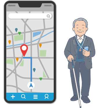 音声と振動で道案内を行う歩行支援アプリ「ナビレク」の機能改良・開発・運用費として活用されます。 視覚障害者が安心して街を歩けるよう、日々アップデートを続けています。