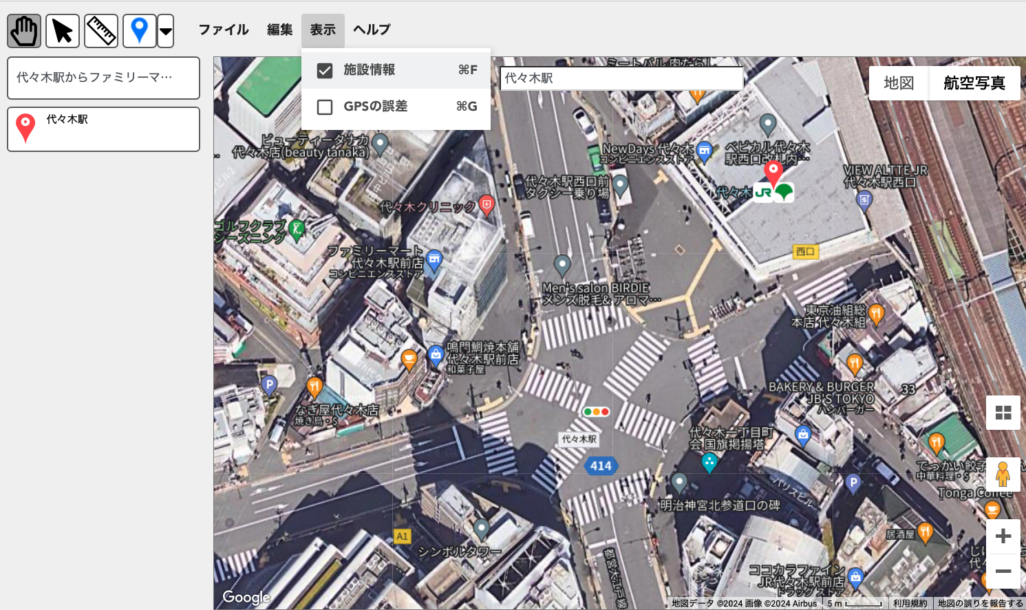 このページでは、簡単な経路(東京の代々木駅からすぐ近くのファミリーマートまで)を例として、ナビレク・バリアフリーマップを作成・公開する一連の手順を説明します。